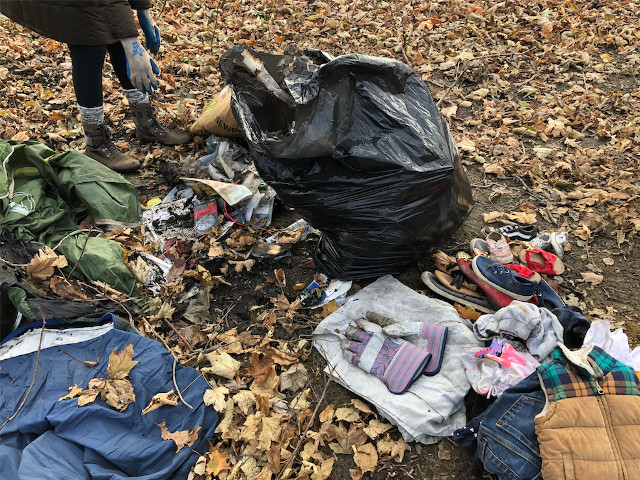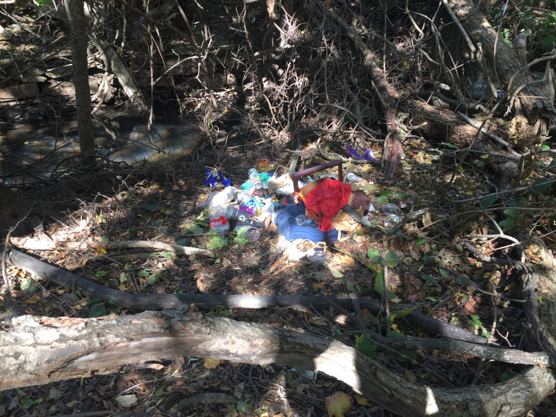 We waited to clean up the resident summer camp we found along our Collyer Field river stretch of the Moshassuck.
