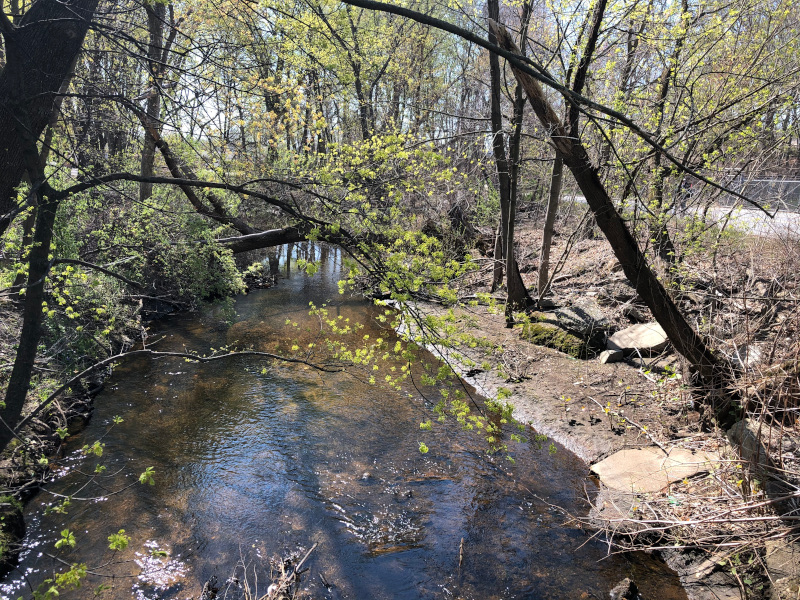 Moshassuck Earth Day Clean-up 2022We met at the amphibian habitat project location within the North Burial Ground in Providence, cleaned up the trash within the seepage zone of the tadpole pond, and then returned to the Veazie Street overpass area of the west tributary to clean up the river banks.The tadpole pond was dry on account of the recent drought in Providence