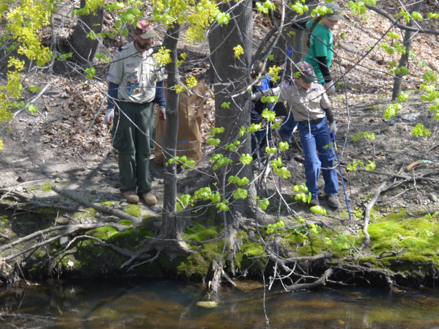 Friends of The Moshassuck participates in the international Earth Day activities by cleaning stretches of the Moshassuck River and its riverbanks.