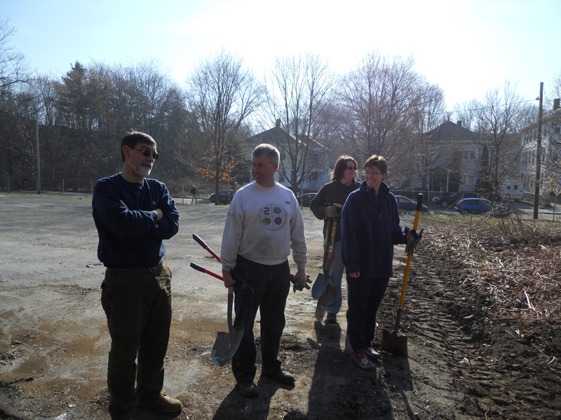 On Saturday April 6th, eight of us went to Collyer Field and planted 5 trees in an hour of enjoyment under the sun. We planted a Carpathian Walnut, an elm, two Pin Oaks, and a honey locust. Two sugar maples will come to us for planting soon, but they will be no sweat (unless it is a hot day) to get planted as well.