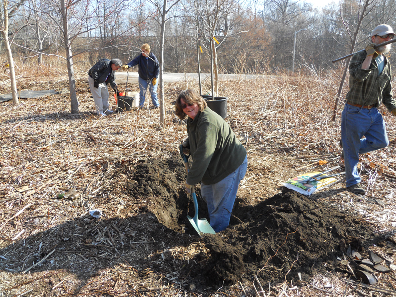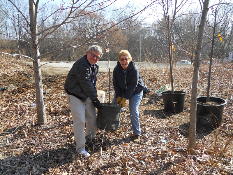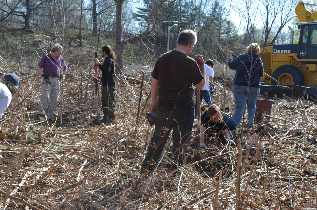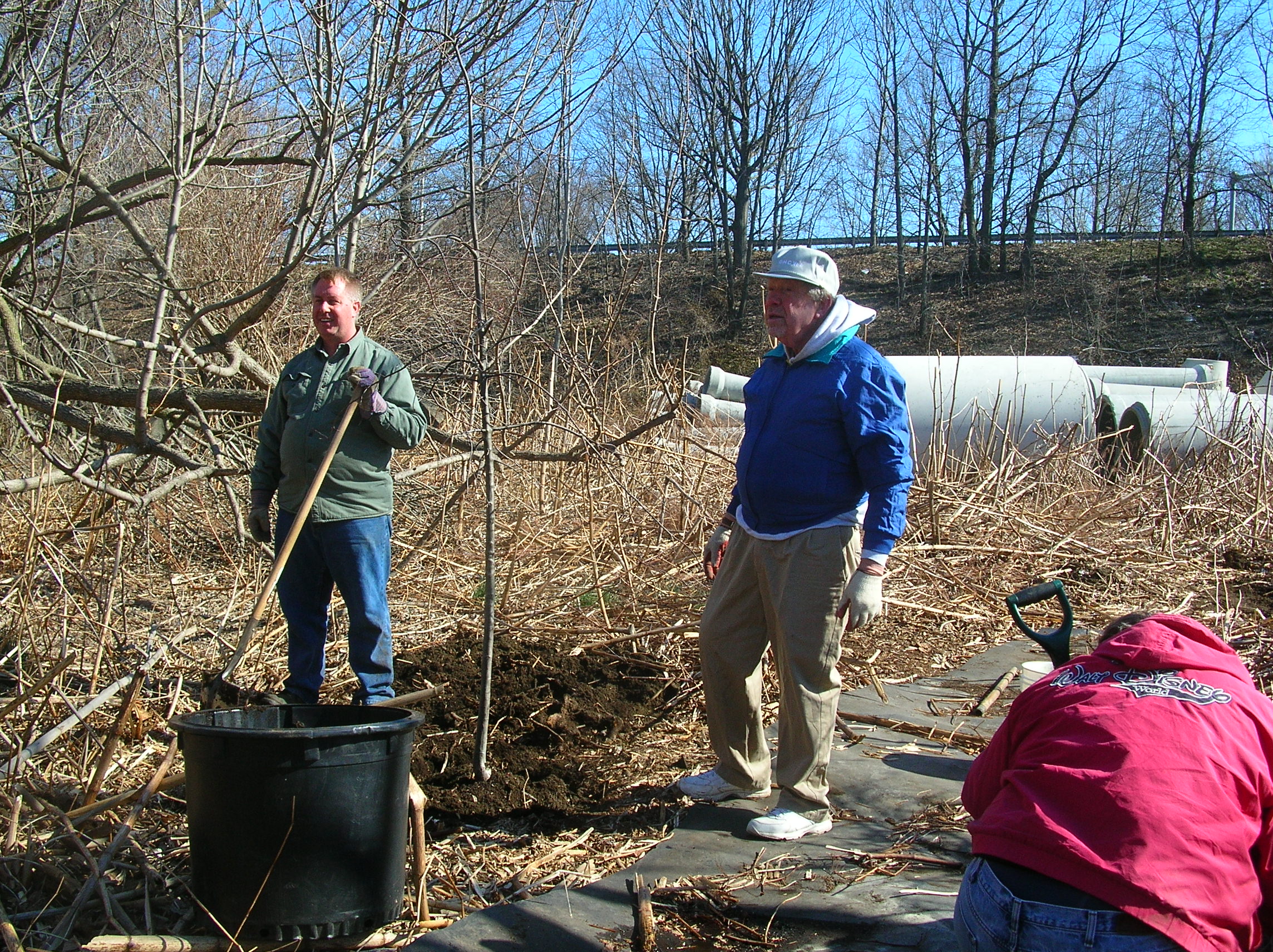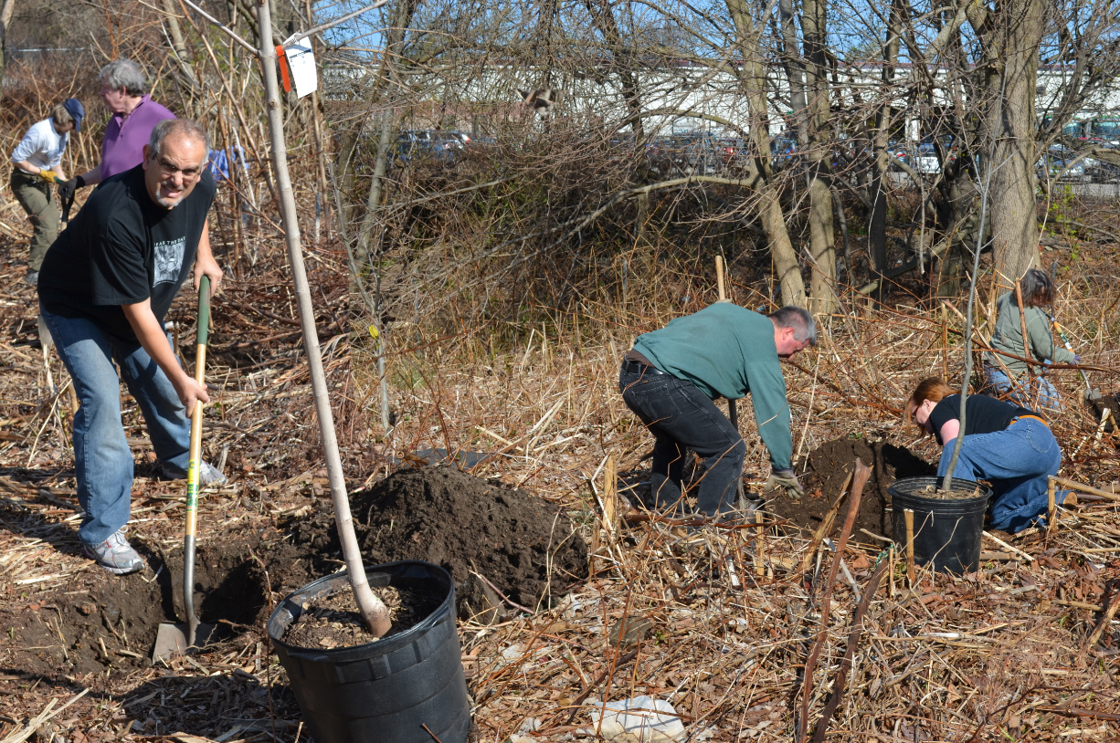 Pictures from the 2015 Tree PlantingThe 2015 tree planting was captured through video: After a winter that kept on going, putting our April 11th plant date in jeopardy, the weather was wonderful for the day. An ideal rain had fallen the previous day so the soil was moist and malleable. We gathered for a bit of meet and greet before getting started. Greg made it easy by planning out the plant sites and digging two of the holes to demonstrate our task. On the docket were six new contributions to the emerging forest: Two Sun Valley Red Maple, two Northern Red Oak, and two Forum Black Gum. Welcome to the family, friends.