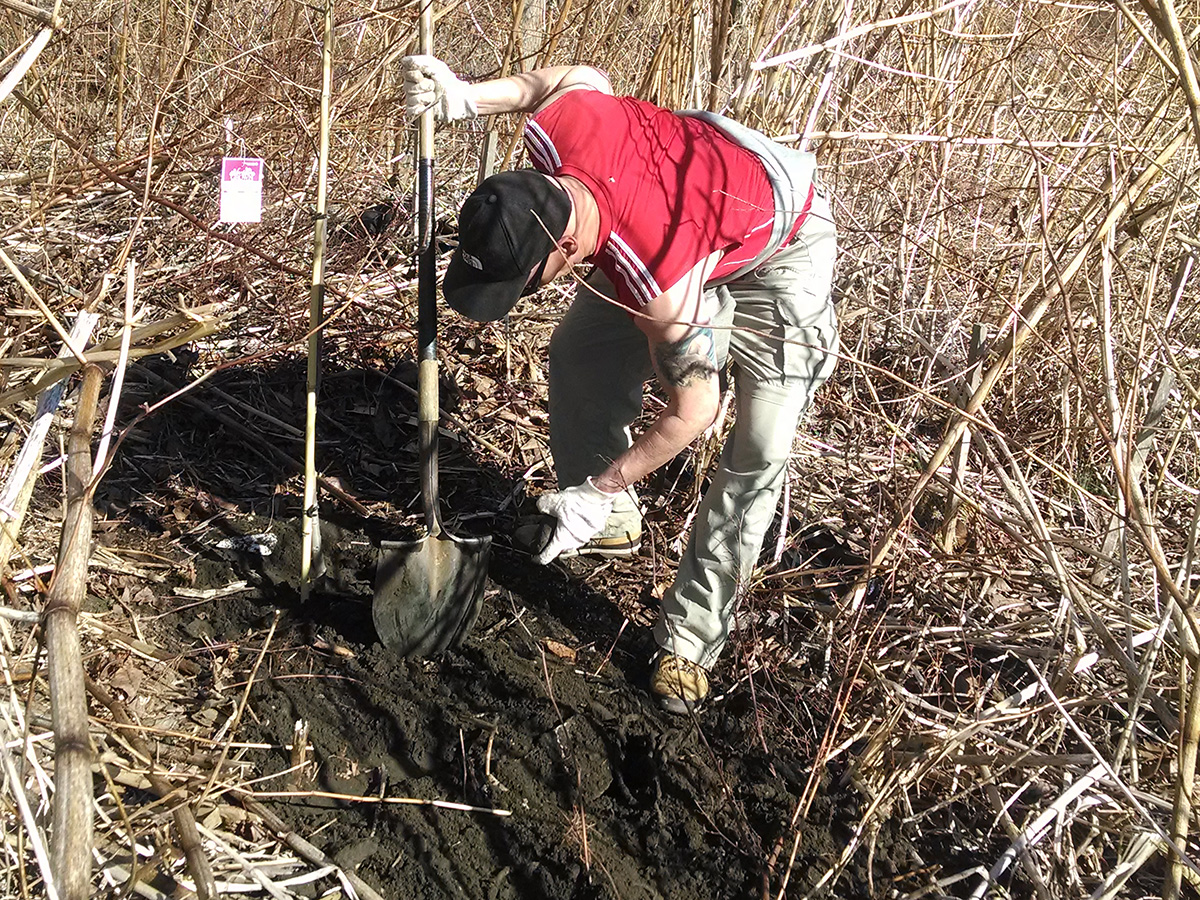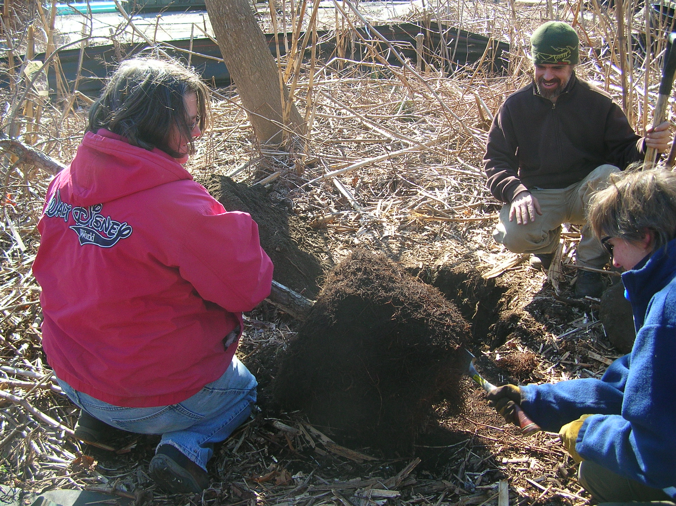 There are a lot of roots to dig through so most trees have two workers. Bob is an exception - collaborating with us from the Ten Mile Watershed Council.