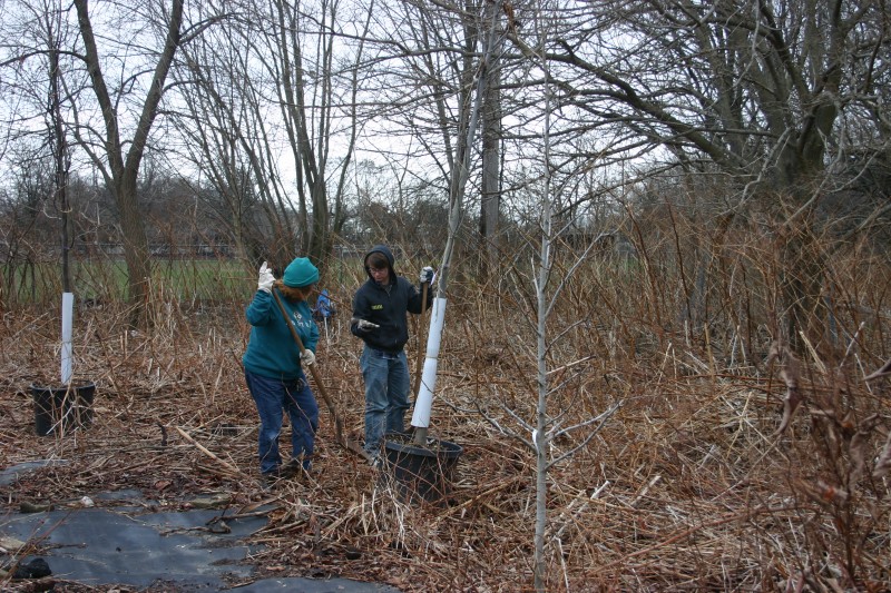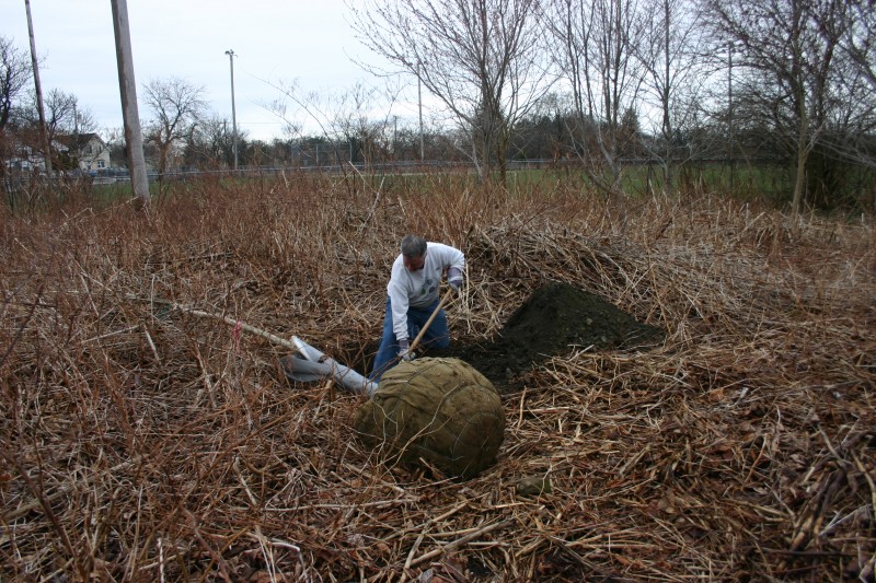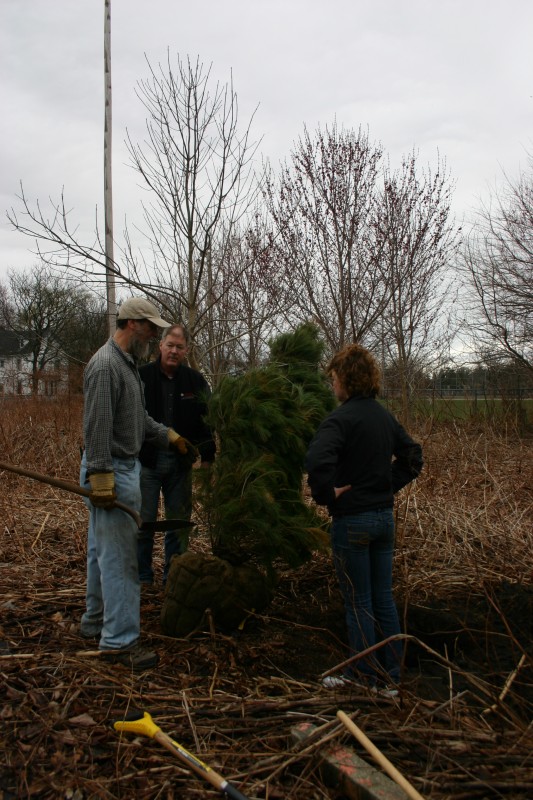 We're running out of room for the initial round of trees. This one is right up against the parking lot used by the Collyer Field maintenance folks.